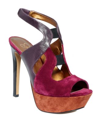 Jessica Simpson is very much ahead of the shoe game, she knows exactly what women want on their feet. For example, this color blocking violet/purple suede and leather open toe pump is definitely giving you fashionista!